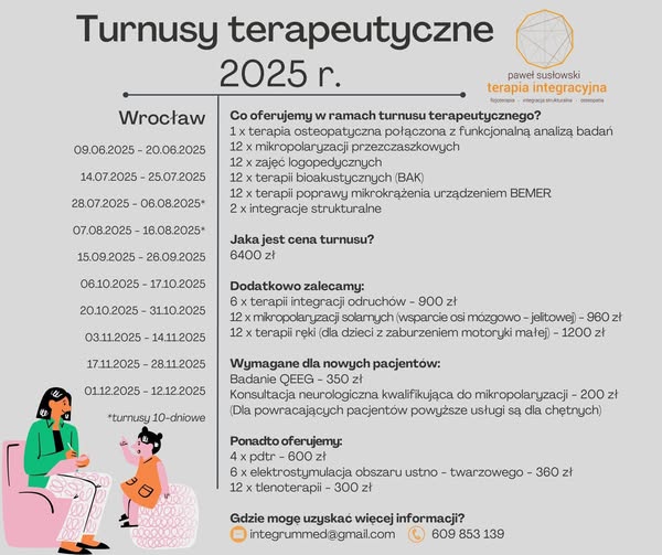 Turnusy odbywają się w naszym ośrodku, w formie intensywnych,